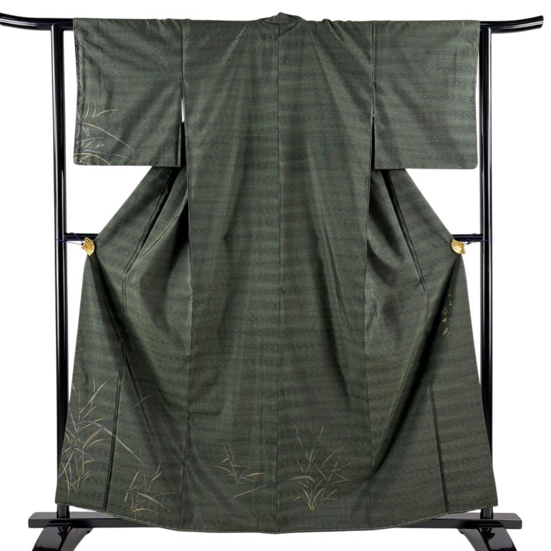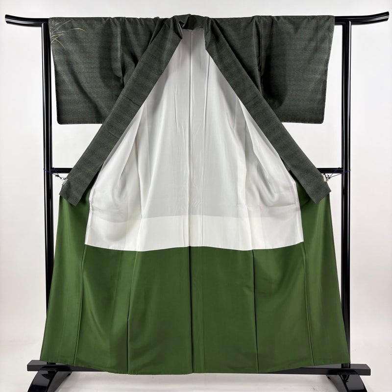 【付下げ】 緑系 深緑 名品 A 約160cm~約169cm 裄丈62cm以下 (S)size 袖丈47cm 9990-29990 美品 二万以下