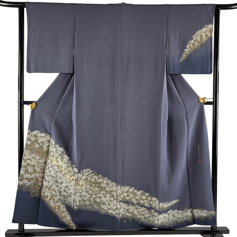 【着物ランク】秀品 【素材】正絹 【身丈】約153.5cm 【裄丈】約61cm 【袖丈】約47cm 【袖幅】約32cm 【前幅】約25.5cm 【後幅】約31cm 【サイズ】S 【着物仕立て】袷 【着用時期】10~5月 【状態ランク】ランクB 【着物着用シーン】披露宴、パーティー、式典、食事会、お茶会、正月