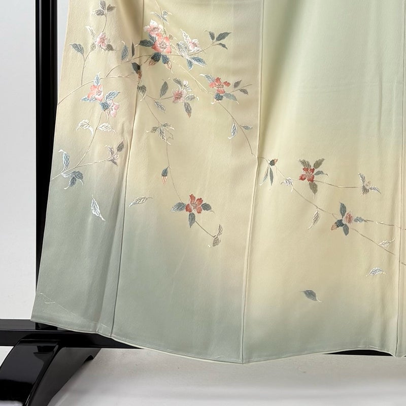 【付下げ】 緑系 薄緑 秀品 B 約160cm~約169cm 裄丈63cm-64cm (S)size 袖丈49cm 4000-7980 二万以下