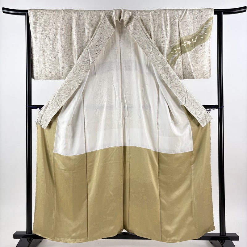 【着物ランク】秀品 【素材】正絹 【身丈】約158cm 【裄丈】約62cm 【袖丈】約48cm 【袖幅】約33cm 【前幅】約24cm 【後幅】約30cm 【サイズ】S 【着物仕立て】袷 【着用時期】10~5月 【状態ランク】ランクB 【着物着用シーン】披露宴、パーティー、式典、食事会、お茶会、正月