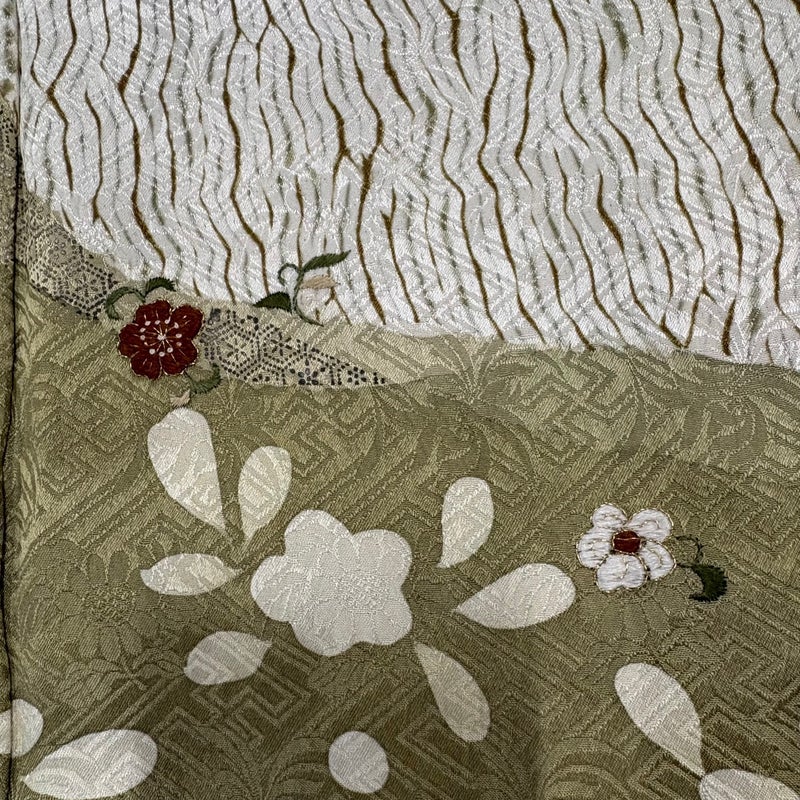 【付下げ】 茶系 茶緑色 秀品 B 約150cm~約159cm 裄丈62cm以下 (S)size 袖丈48cm 4000-7980 二万以下