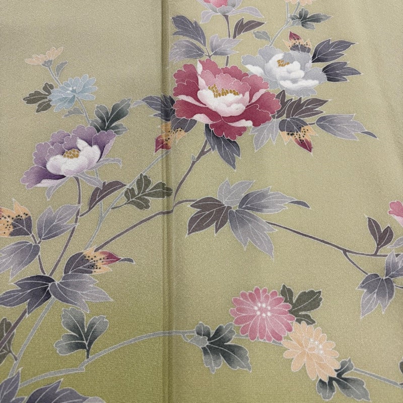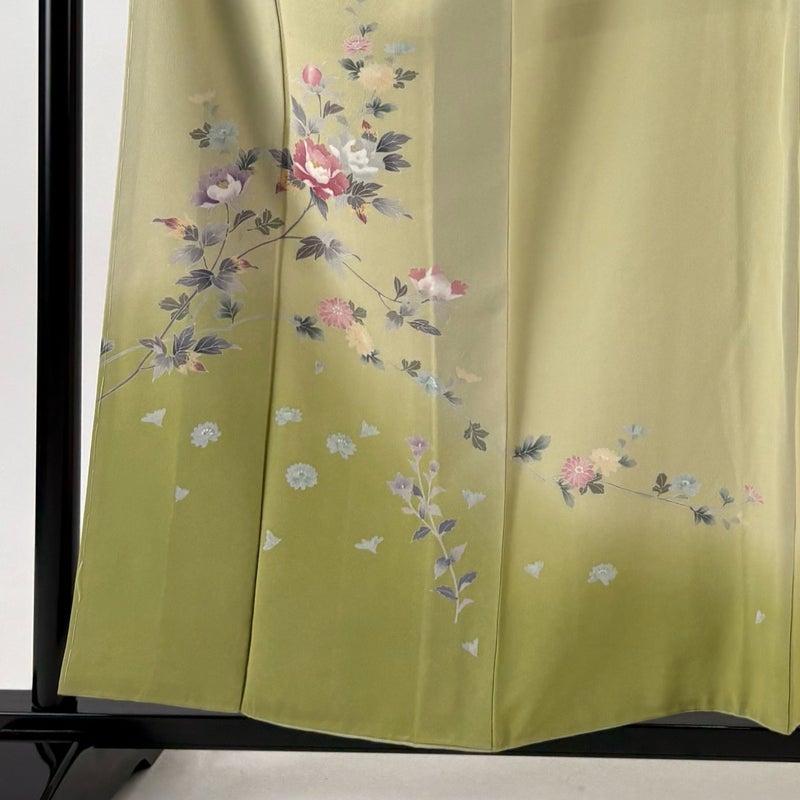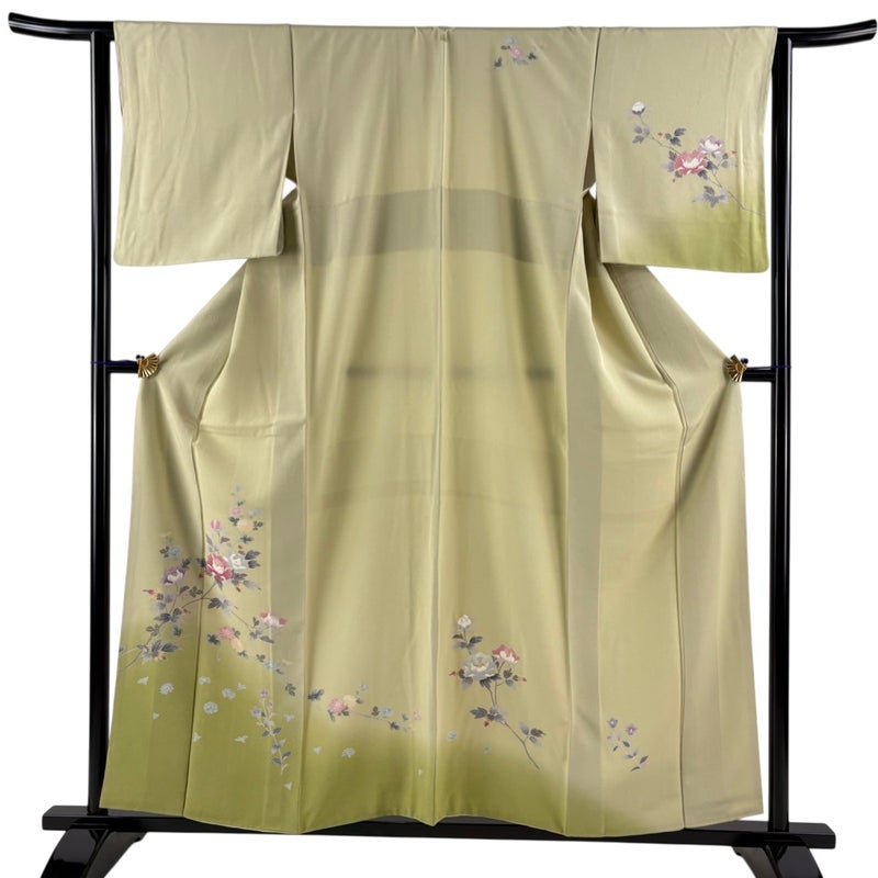 【付下げ】 緑系 抹茶色 秀品 A 約150cm~約159cm 裄丈63cm-64cm (S)size 袖丈48cm 7990-9980 美品 二万以下