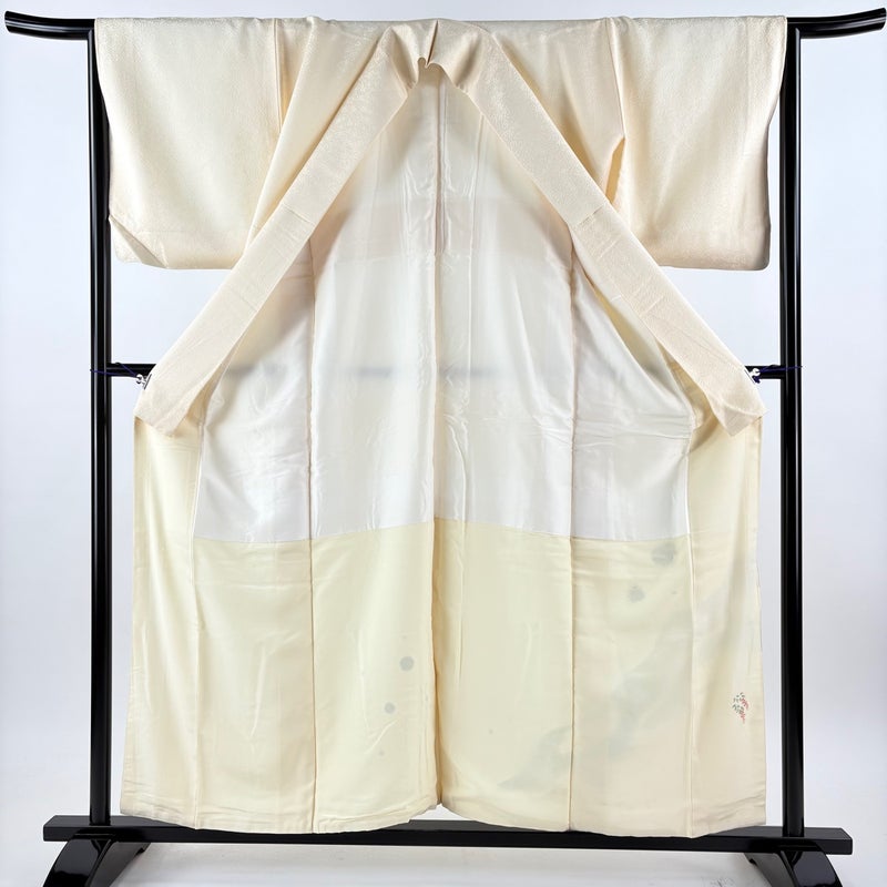 【着物ランク】秀品 【素材】正絹 【身丈】約155.5cm 【裄丈】約64.5cm 【袖丈】約47.5cm 【袖幅】約34cm 【前幅】約22.5cm 【後幅】約29cm 【サイズ】M 【着物仕立て】袷 【着用時期】10~5月 【状態ランク】ランクC 【着物着用シーン】披露宴、パーティー、式典、食事会、お茶会、正月