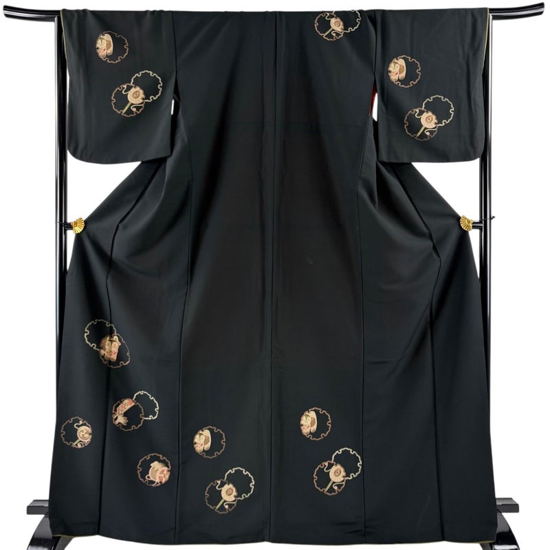 【付下げ】 黒系 黒 優品 B 約160cm~約169cm 裄丈66cm (M)size 袖丈49cm -3980 二万以下