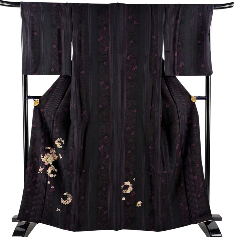 【付下げ】 黒系 墨色 秀品 B 約160cm~約169cm 裄丈67cm-68cm (L)size 袖丈50cm-60cm 4000-7980 二万以下