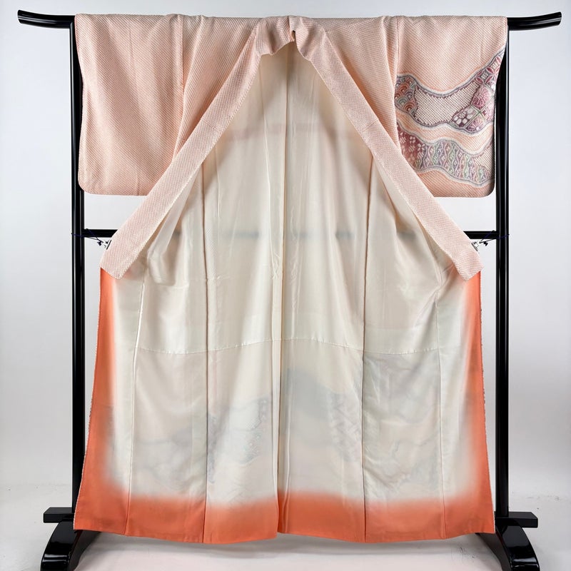 【付下げ】 赤系 薄オレンジ 名品 B 約160cm~約169cm 裄丈65cm (M)size 袖丈50cm-60cm 9990-29990 二万以下