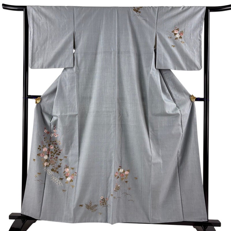【付下げ】 灰色系 青灰色 名品 B 約160cm~約169cm 裄丈63cm-64cm (M)size 袖丈48cm 9990-29990 二万以下