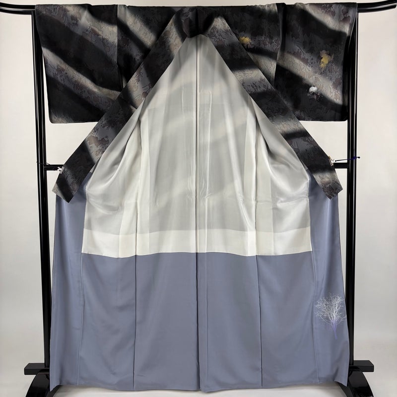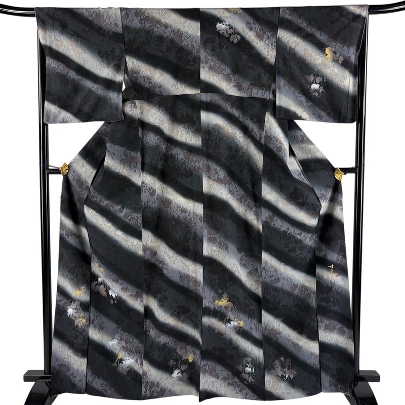 【付下げ】 黒系 墨色 名品 A 約160cm~約169cm 裄丈66cm (M)size 袖丈48cm 9990-29990 美品 二万以下
