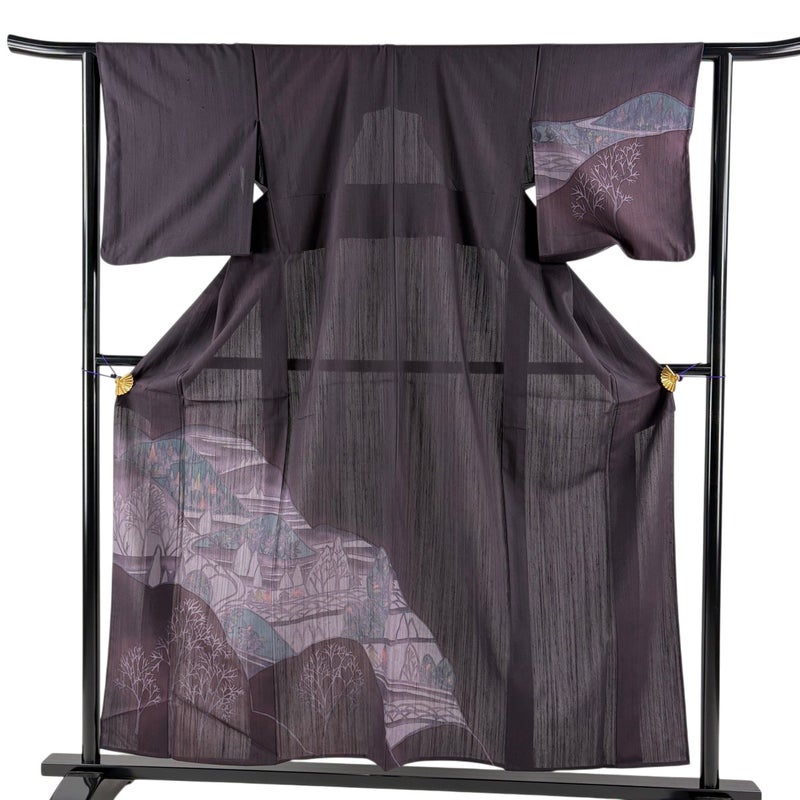【付下げ】 紫系 濃紫 秀品 C 約150cm~約159cm 裄丈62cm以下 (S)size 袖丈49cm 7990-9980 二万以下