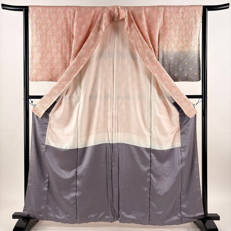 【付下げ】 赤系 薄ピンク 秀品 C 約160cm~約169cm 裄丈62cm以下 (S)size 袖丈50cm-60cm 4000-7980 二万以下