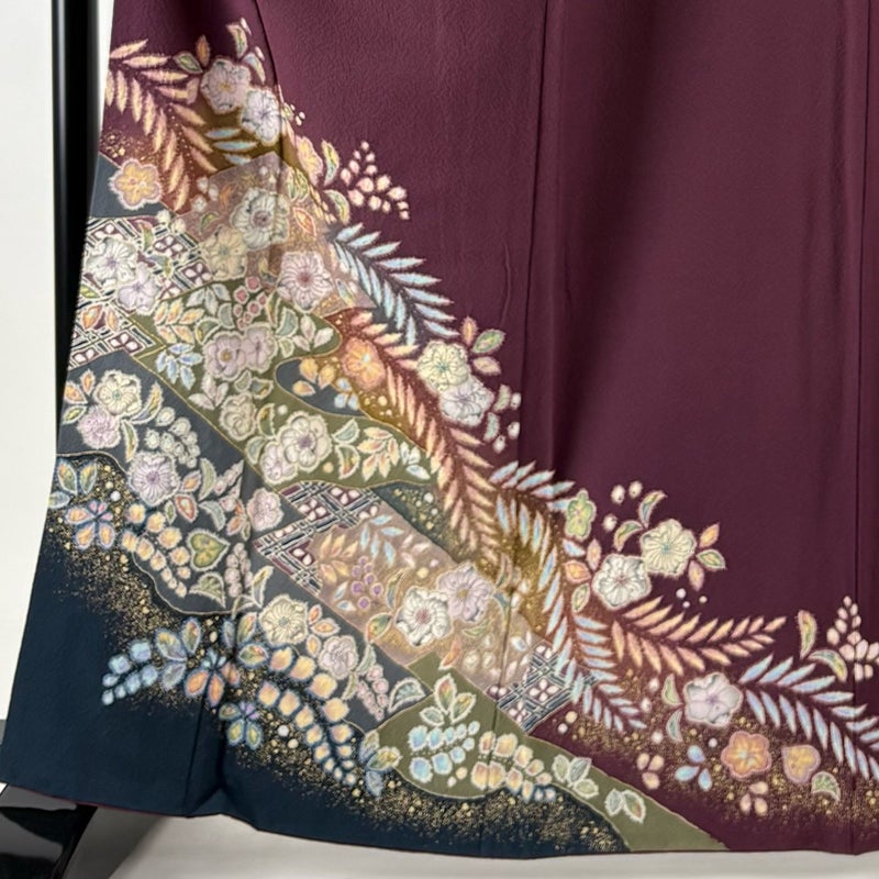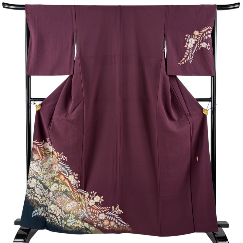 【付下げ】 紫系 濃紫 秀品 B 約160cm~約169cm 裄丈67cm-68cm (M)size 袖丈50cm-60cm 4000-7980 二万以下