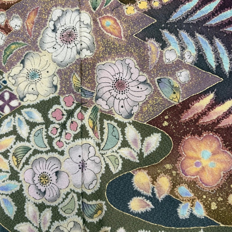十日町の老舗、本格派辻が花で有名な翠山工房の作品です。 合わせる帯の色柄により、お召しいただく席を選べる付下げです。 帯により印象を変える事の出来る印象のお着物は、様々に活躍してくれることでしょう。 ※身丈・裄丈の縫込みの長さは測っておりません。 衿周りや両袖口中に汚れ、表地所々にシワがございます。 リユース品としては良い状態で、まだまだご活用頂けると思われます。 ※なお、厳しく商品の状態確認を行っておりますが、記載の汚れ以外にも見落とし箇所がある可能性がある旨ご了承いただけますと幸いです。 沢山の商品の中からご覧いただき誠にありがとうございます。