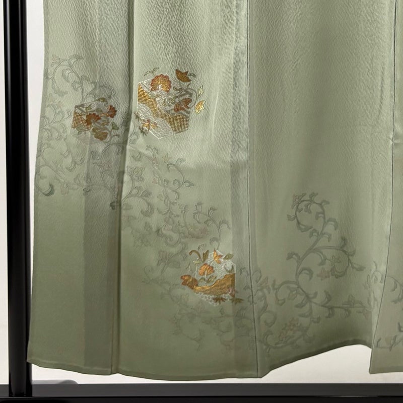 【付下げ】 灰色系 灰緑 秀品 B 約150cm~約159cm 裄丈63cm-64cm (S)size 袖丈46cm以下 9990-29990 二万以下