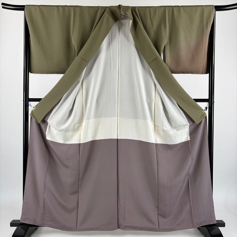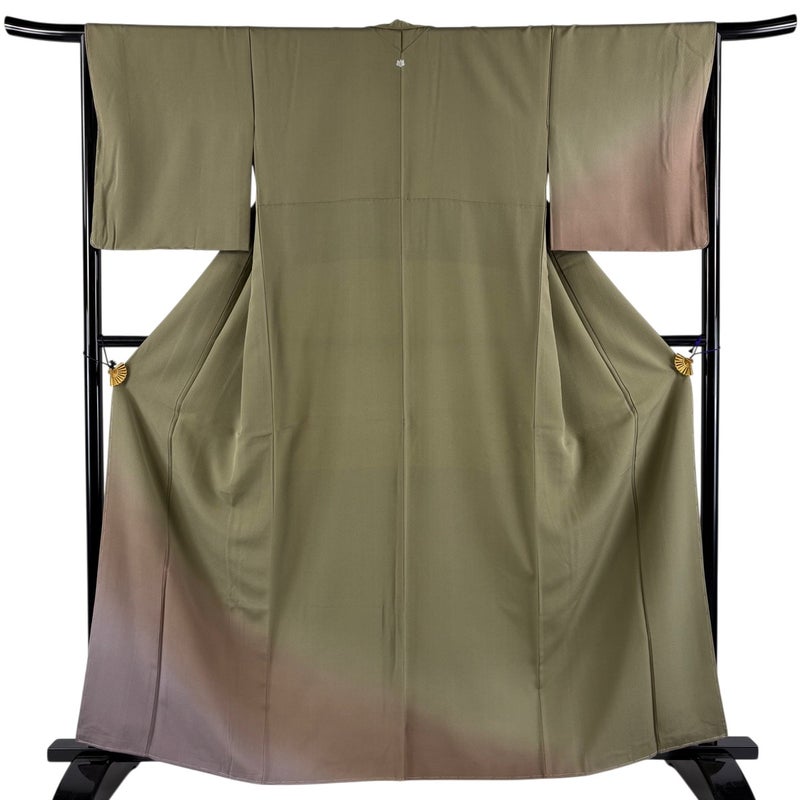 【付下げ】 茶系 茶緑色 秀品 A 約160cm~約169cm 裄丈66cm (M)size 袖丈48cm 7990-9980 美品 二万以下