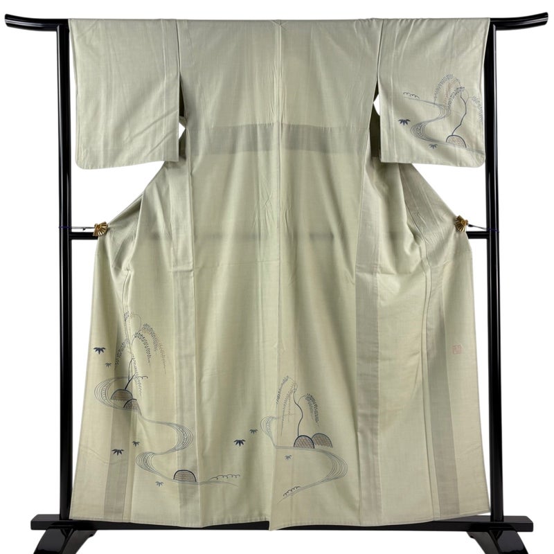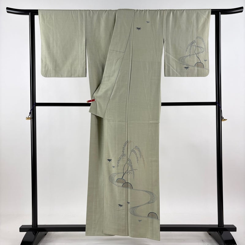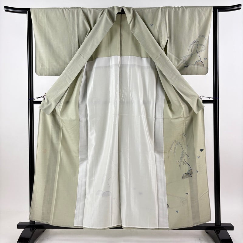 【付下げ】 灰色系 灰緑 逸品 B 約150cm~約159cm 裄丈63cm-64cm (M)size 袖丈48cm 30000- 五万以下