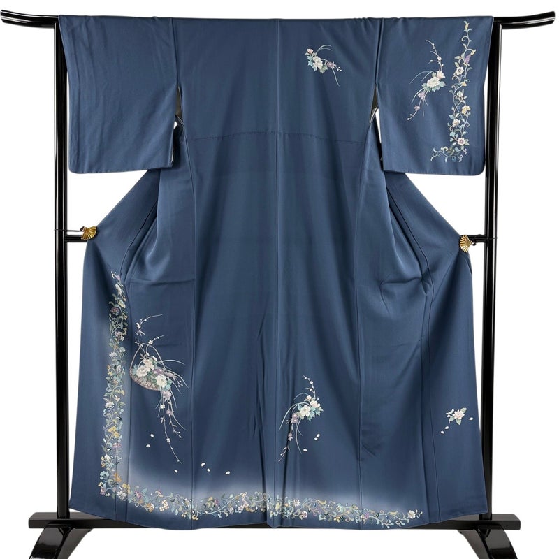 【付下げ】 灰色系 青灰色 秀品 A 約150cm~約159cm 裄丈65cm (M)size 袖丈48cm 7990-9980 美品 二万以下
