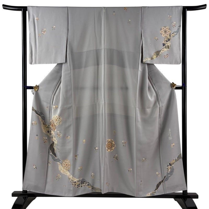【着物ランク】秀品 【素材】正絹 【身丈】約156.5cm 【裄丈】約63cm 【袖丈】約48cm 【袖幅】約33.5cm 【前幅】約24.5cm 【後幅】約31cm 【サイズ】S 【着物仕立て】袷 【着用時期】10~5月 【状態ランク】ランクB 【着物着用シーン】披露宴、パーティー、式典、食事会、お茶会、正月