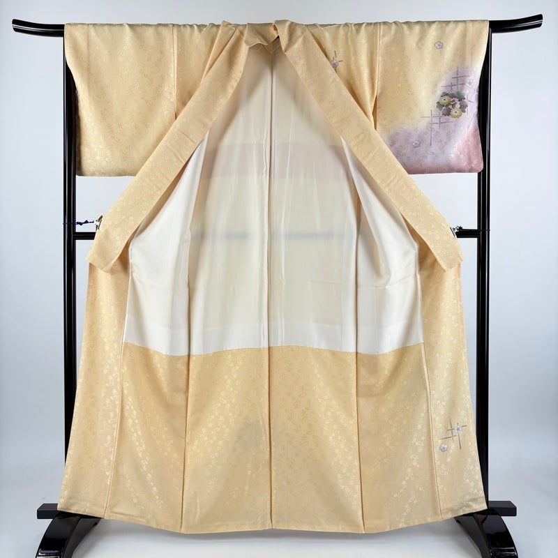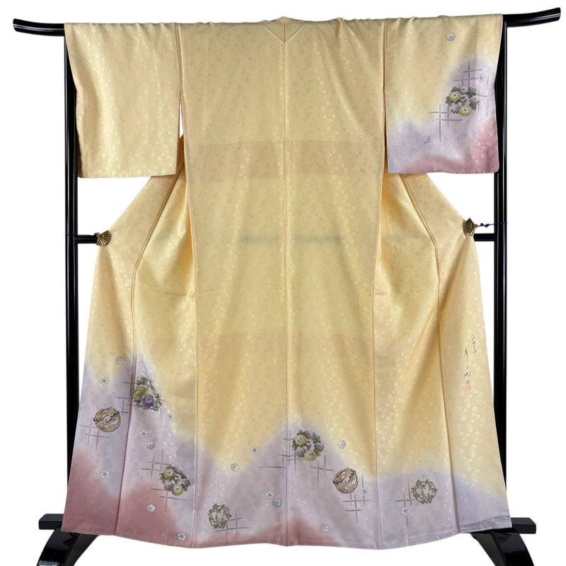 【着物ランク】秀品 【素材】正絹 【身丈】約162.5cm 【裄丈】約68cm 【袖丈】約48.5cm 【袖幅】約34cm 【前幅】約24.5cm 【後幅】約29.5cm 【サイズ】L 【着物仕立て】袷 【着用時期】10~5月 【状態ランク】ランクA 【着物着用シーン】披露宴、パーティー、式典、食事会、お茶会、正月