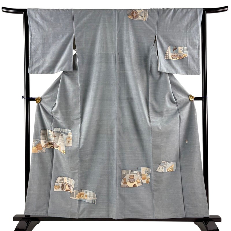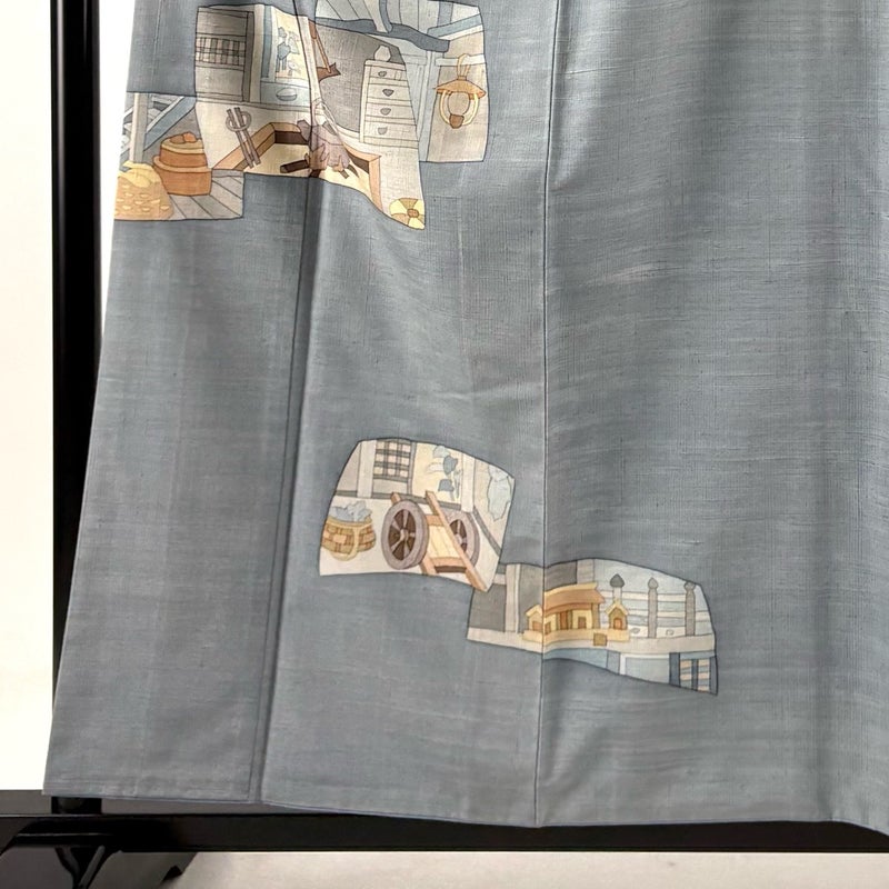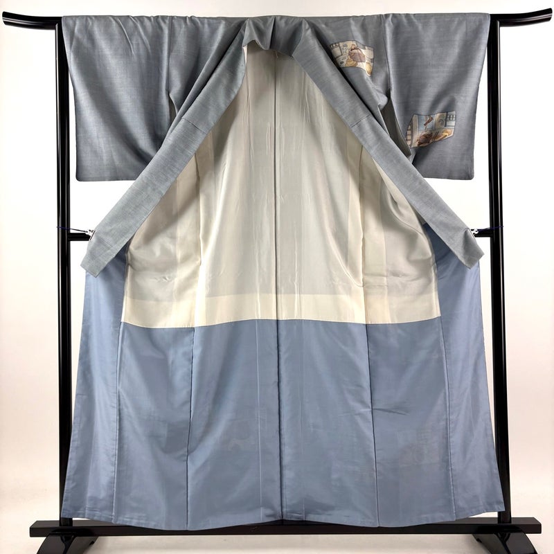 【付下げ】 灰色系 青灰色 秀品 B 約150cm~約159cm 裄丈63cm-64cm (S)size 袖丈50cm-60cm 4000-7980 二万以下