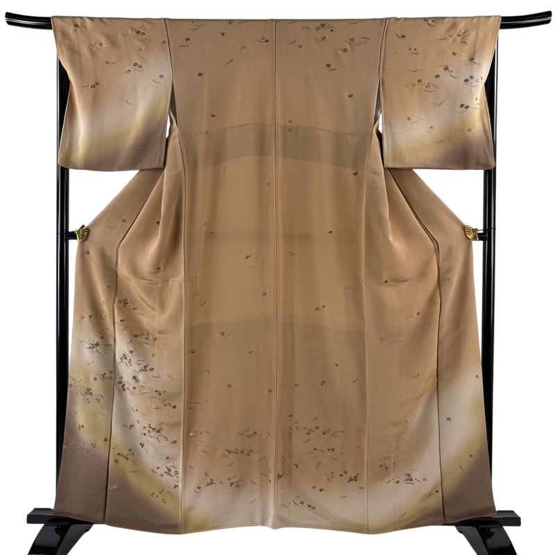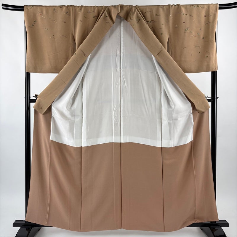【付下げ】 茶系 茶色 秀品 A 約150cm~約159cm 裄丈67cm-68cm (M)size 袖丈49cm 7990-9980 美品 二万以下
