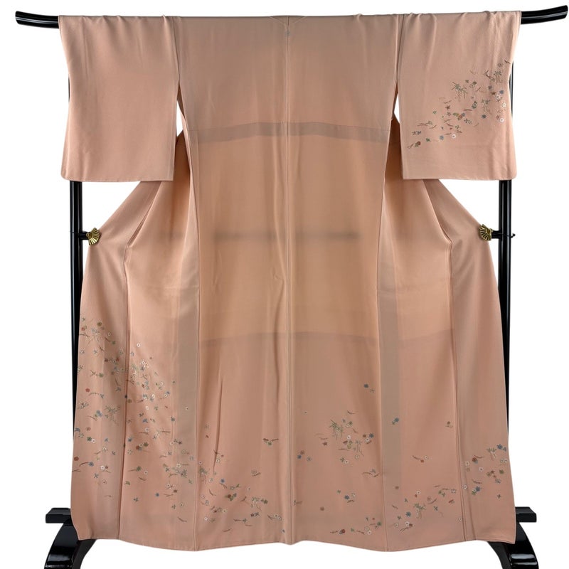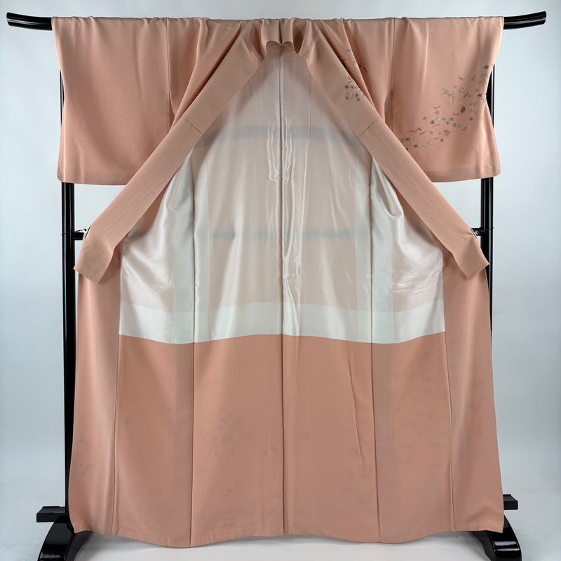 【付下げ】 赤系 サーモンピンク 秀品 C 約160cm~約169cm 裄丈69cm以上 (L)size 袖丈50cm-60cm 4000-7980 二万以下