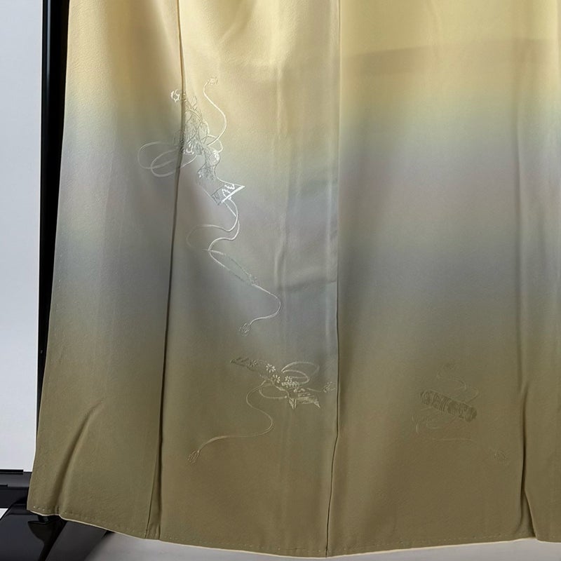 【付下げ】 黄色系 薄黄 秀品 B 約160cm~約169cm 裄丈69cm以上 (L)size 袖丈47cm 4000-7980 二万以下