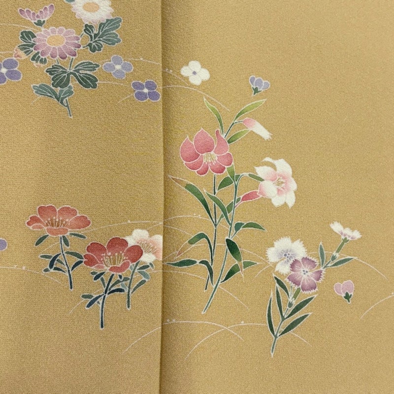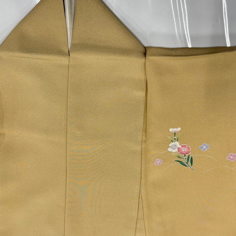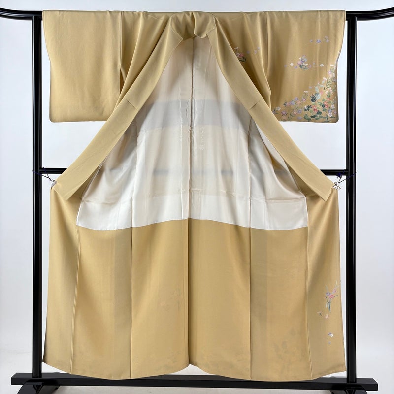 【付下げ】 黄色系 薄黄土色 秀品 A 約150cm~約159cm 裄丈63cm-64cm (M)size 袖丈46cm以下 7990-9980 美品 二万以下