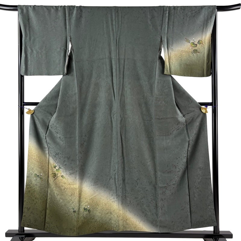 【付下げ】 灰色系 灰緑 秀品 B 約150cm~約159cm 裄丈66cm (M)size 袖丈48cm 4000-7980 二万以下