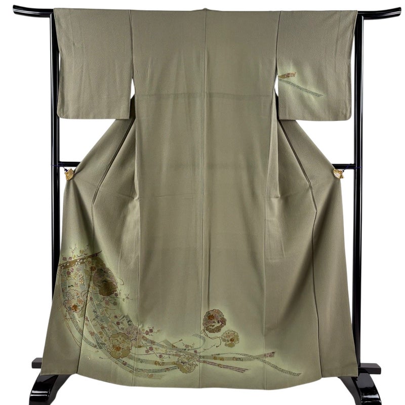 【付下げ】 灰色系 灰緑 秀品 A 約160cm~約169cm 裄丈63cm-64cm (M)size 袖丈48cm 7990-9980 美品 二万以下