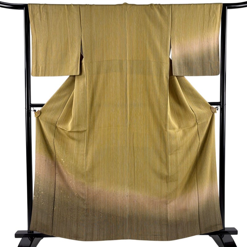【付下げ】 黄色系 山吹茶色 秀品 B 約160cm~約169cm 裄丈63cm-64cm (M)size 袖丈48cm 4000-7980 二万以下