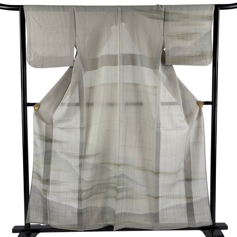【着物ランク】秀品 【素材】正絹 【身丈】約159cm 【裄丈】約64.5cm 【袖丈】約43.5cm 【袖幅】約32.5cm 【前幅】約25cm 【後幅】約30.5cm 【サイズ】M 【着物仕立て】薄物 【着用時期】7~8月 【状態ランク】ランクB 【着物着用シーン】披露宴、パーティー、式典、食事会、お茶会、正月