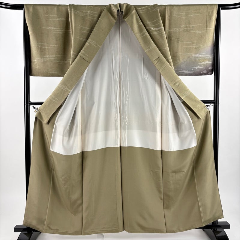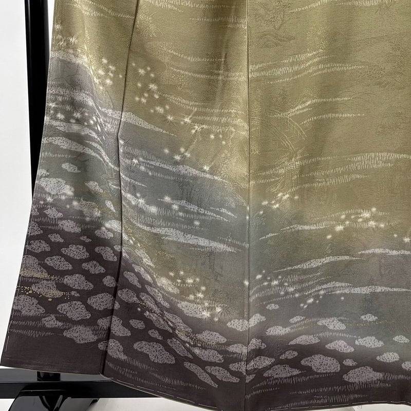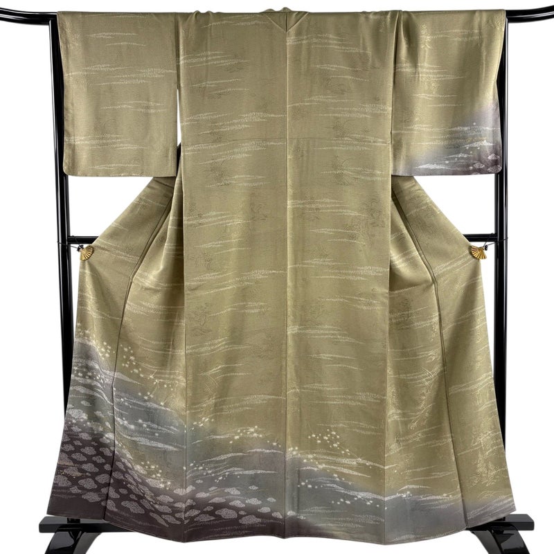 【付下げ】 灰色系 灰緑 秀品 A 約160cm~約169cm 裄丈67cm-68cm (L)size 袖丈48cm 7990-9980 美品 二万以下