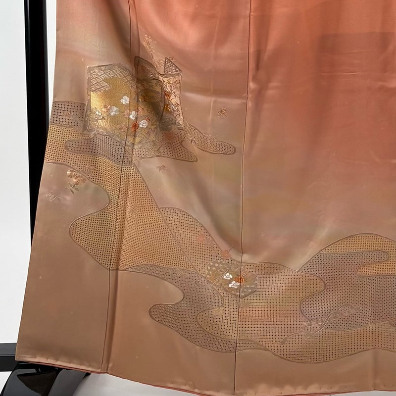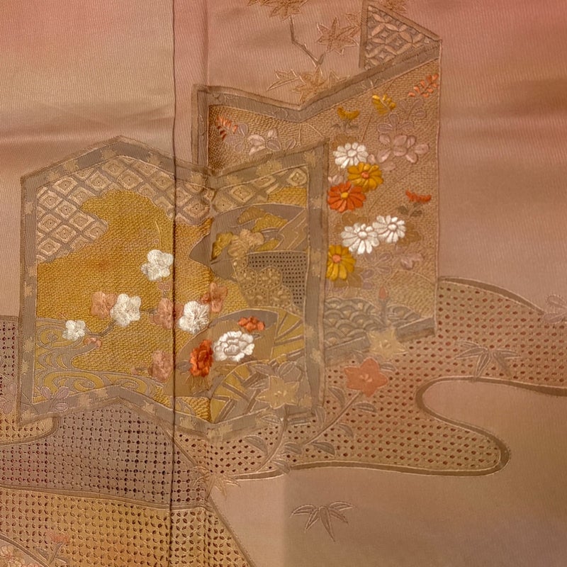 【着物ランク】秀品 【素材】正絹 【身丈】約164.5cm 【裄丈】約68cm 【袖丈】約48cm 【袖幅】約34.5cm 【前幅】約24.5cm 【後幅】約30cm 【サイズ】L 【着物仕立て】袷 【着用時期】10~5月 【状態ランク】ランクB 【着物着用シーン】披露宴、パーティー、式典、食事会、お茶会、正月