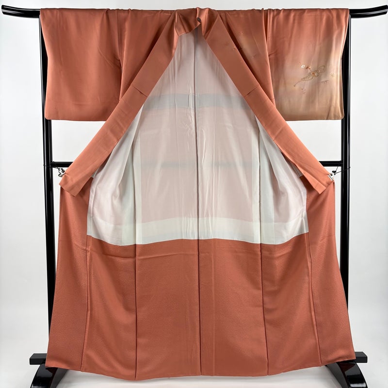 【付下げ】 赤系 サーモンピンク 秀品 B 約160cm~約169cm 裄丈67cm-68cm (L)size 袖丈48cm 4000-7980 二万以下