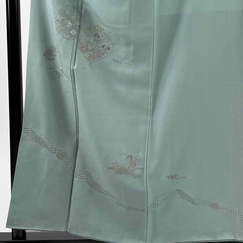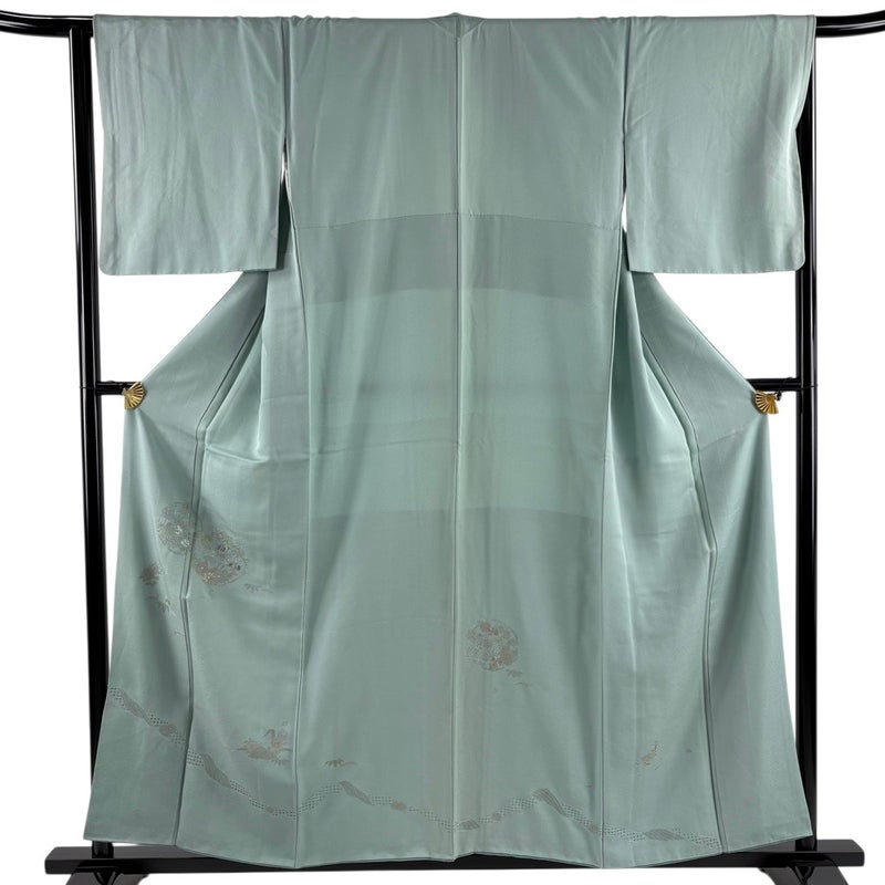 【付下げ】 緑系 薄緑 秀品 C 約150cm~約159cm 裄丈66cm (M)size 袖丈48cm 4000-7980 二万以下