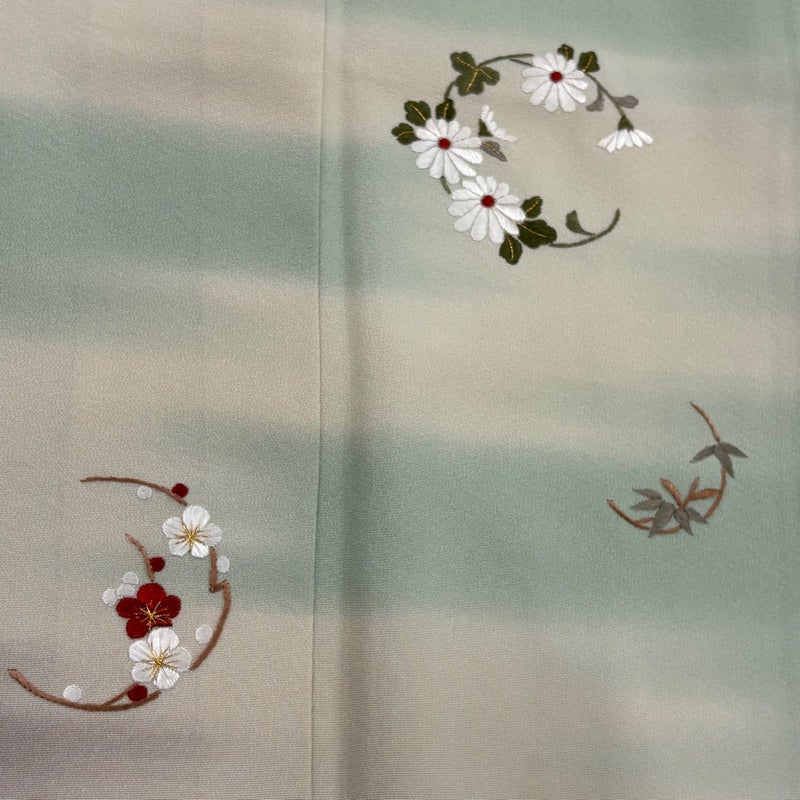【付下げ】 緑系 薄緑 秀品 B 約160cm~約169cm 裄丈65cm (M)size 袖丈49cm 4000-7980 二万以下