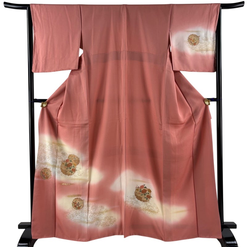 【付下げ】 赤系 ピンク 秀品 B 約160cm~約169cm 裄丈63cm-64cm (M)size 袖丈48cm 4000-7980 二万以下
