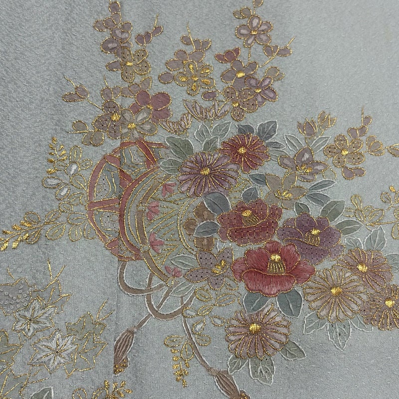 【着物ランク】秀品 【素材】正絹 【身丈】約166cm 【裄丈】約69cm 【袖丈】約49cm 【袖幅】約35.5cm 【前幅】約24.5cm 【後幅】約28.5cm 【サイズ】L 【着物仕立て】袷 【着用時期】10~5月 【状態ランク】ランクB 【着物着用シーン】披露宴、パーティー、式典、食事会、お茶会、正月