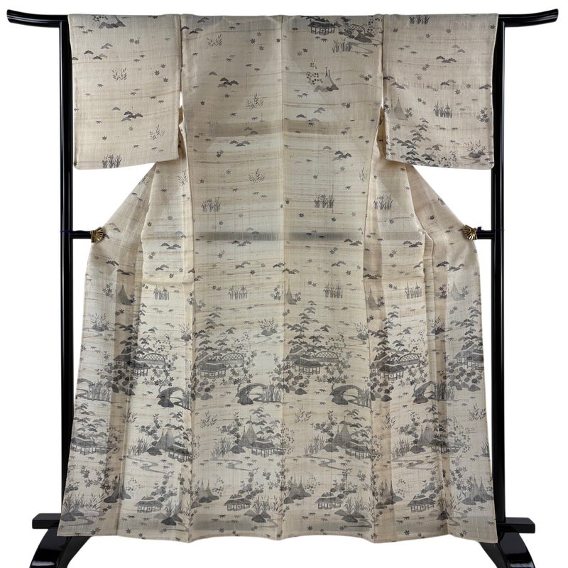 【着物ランク】秀品 【素材】正絹 【身丈】約162cm 【裄丈】約65cm 【袖丈】約49cm 【袖幅】約33.5cm 【前幅】約24.5cm 【後幅】約31.5cm 【サイズ】M 【着物仕立て】薄物 【着用時期】7~8月 【状態ランク】ランクB 【着物着用シーン】披露宴、パーティー、式典、食事会、お茶会、正月