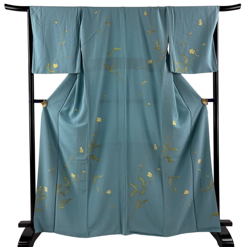 【付下げ】 青系 水色 秀品 B 約160cm~約169cm 裄丈69cm以上 (L)size 袖丈48cm 4000-7980 二万以下