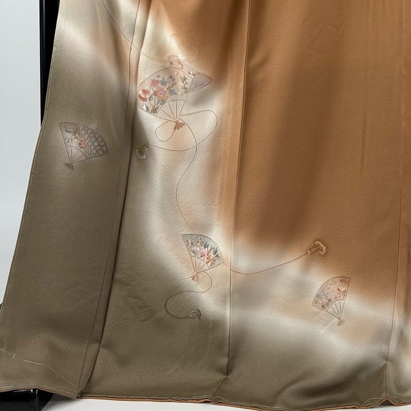 【付下げ】 茶系 薄茶色 秀品 B 約170cm~約179cm 裄丈69cm以上 (L)size 袖丈49cm 4000-7980 二万以下