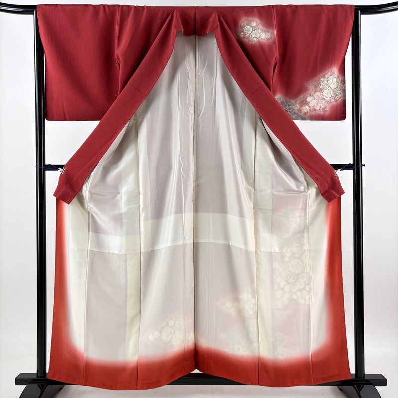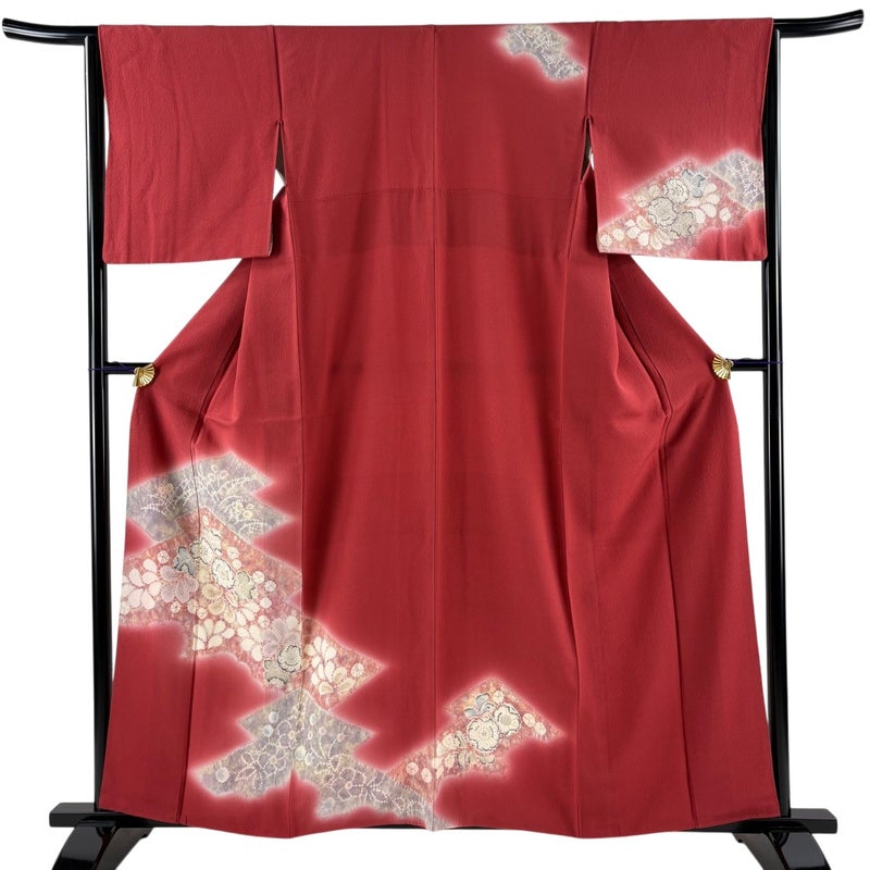 【付下げ】 赤系 茜色 秀品 B 約150cm~約159cm 裄丈63cm-64cm (M)size 袖丈48cm 4000-7980 二万以下