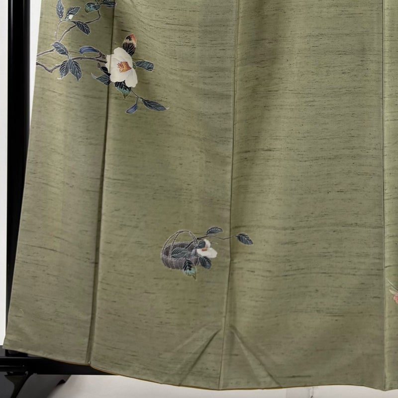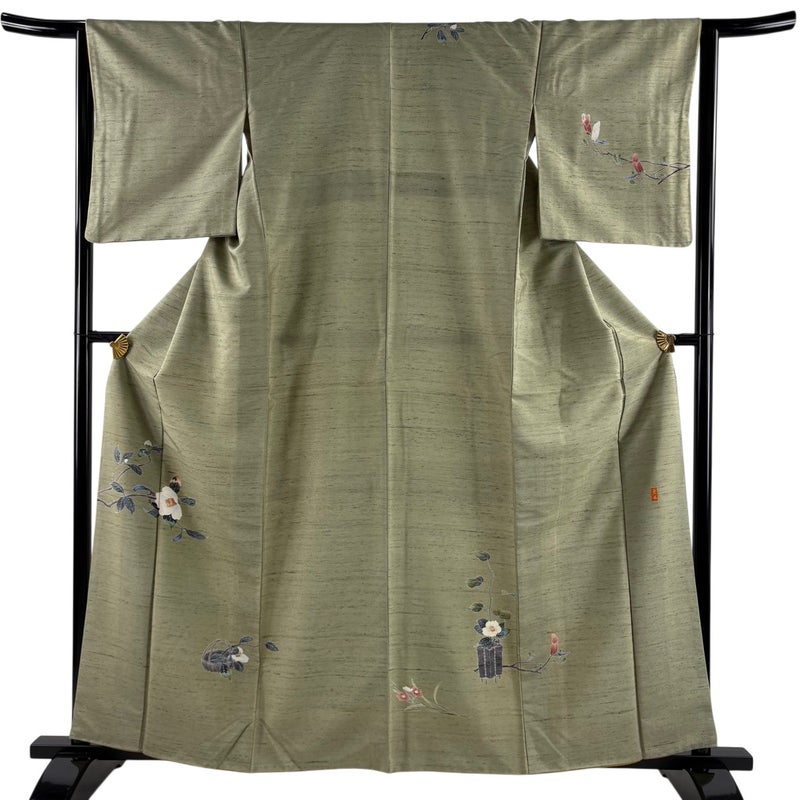【付下げ】 灰色系 灰緑 秀品 C 約160cm~約169cm 裄丈63cm-64cm (M)size 袖丈48cm 4000-7980 二万以下