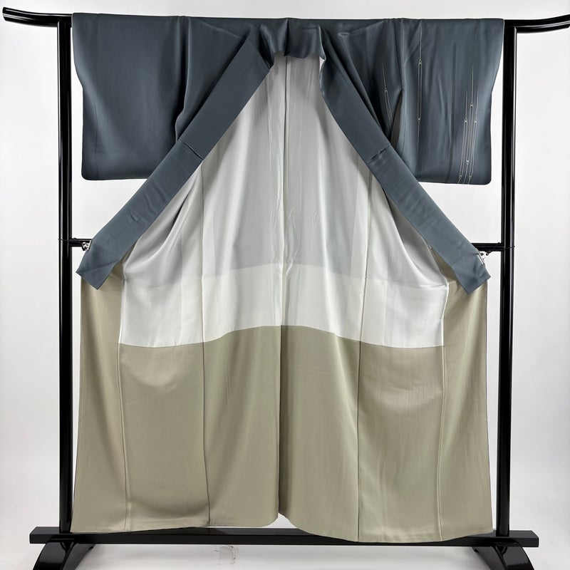 【付下げ】 灰色系 青灰色 秀品 B 約150cm~約159cm 裄丈63cm-64cm (S)size 袖丈48cm 4000-7980 二万以下