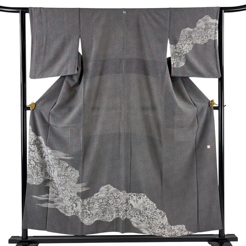 【付下げ】 灰色系 灰色 秀品 A 約150cm~約159cm 裄丈62cm以下 (S)size 袖丈49cm 7990-9980 美品 二万以下
