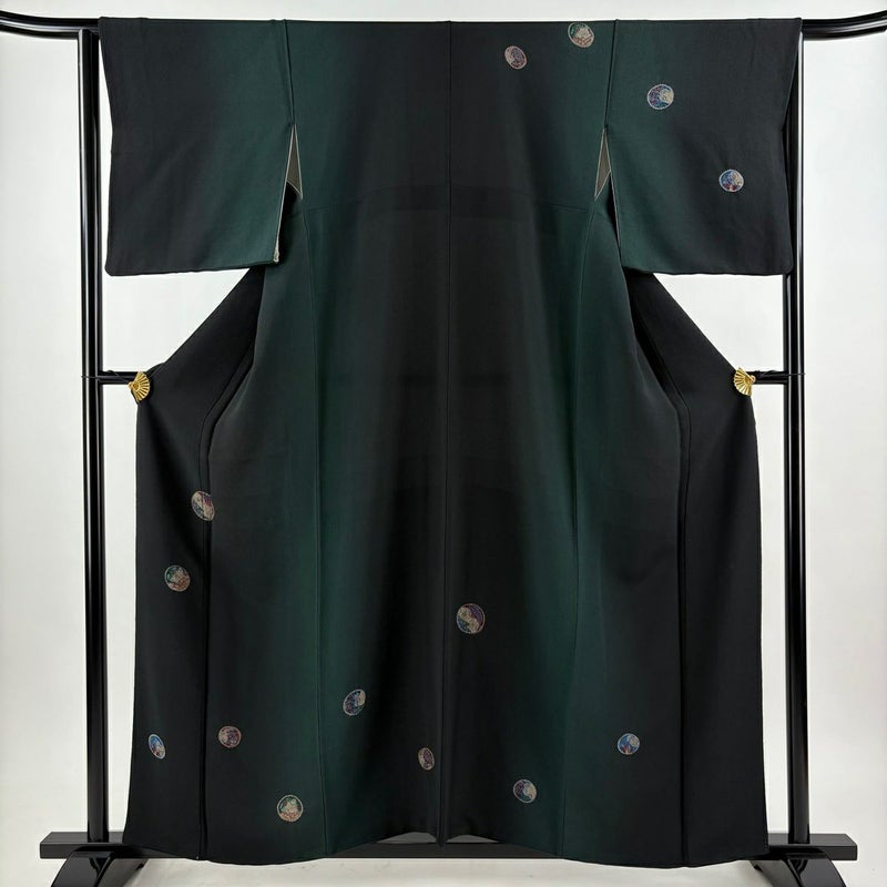 【付下げ】 黒系 黒 秀品 B 約150cm~約159cm 裄丈63cm-64cm (M)size 袖丈49cm 4000-7980 二万以下