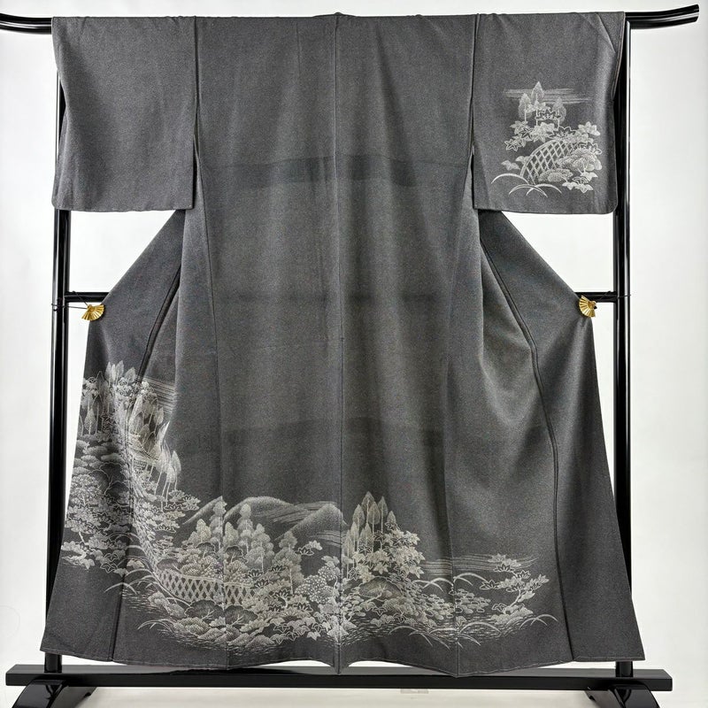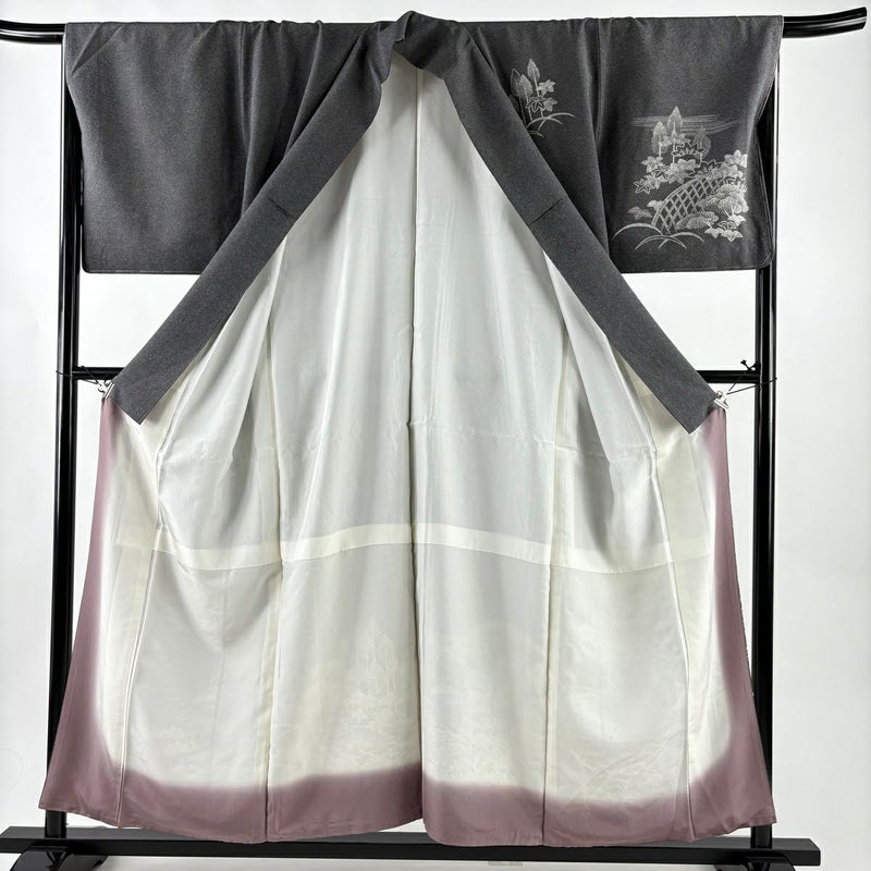 【付下げ】 黒系 墨色 秀品 B 約150cm~約159cm 裄丈66cm (M)size 袖丈48cm 4000-7980 二万以下