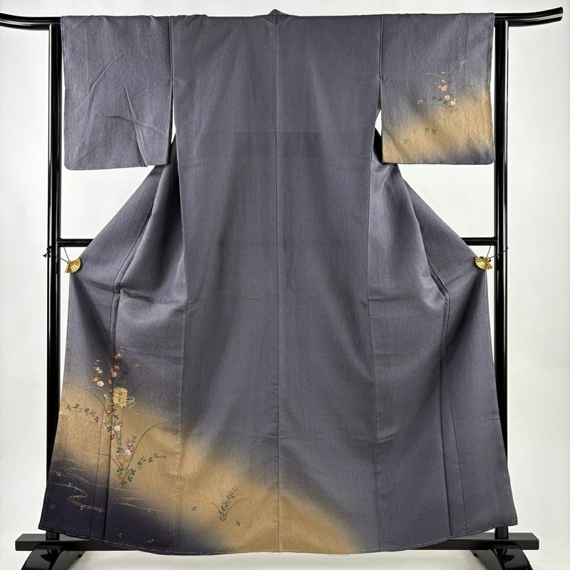 【付下げ】 灰色系 青灰色 秀品 B 約160cm~約169cm 裄丈62cm以下 (S)size 袖丈46cm以下 4000-7980 二万以下