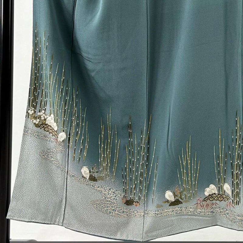 【付下げ】 緑系 緑 秀品 B 約150cm~約159cm 裄丈63cm-64cm (S)size 袖丈47cm 4000-7980 二万以下