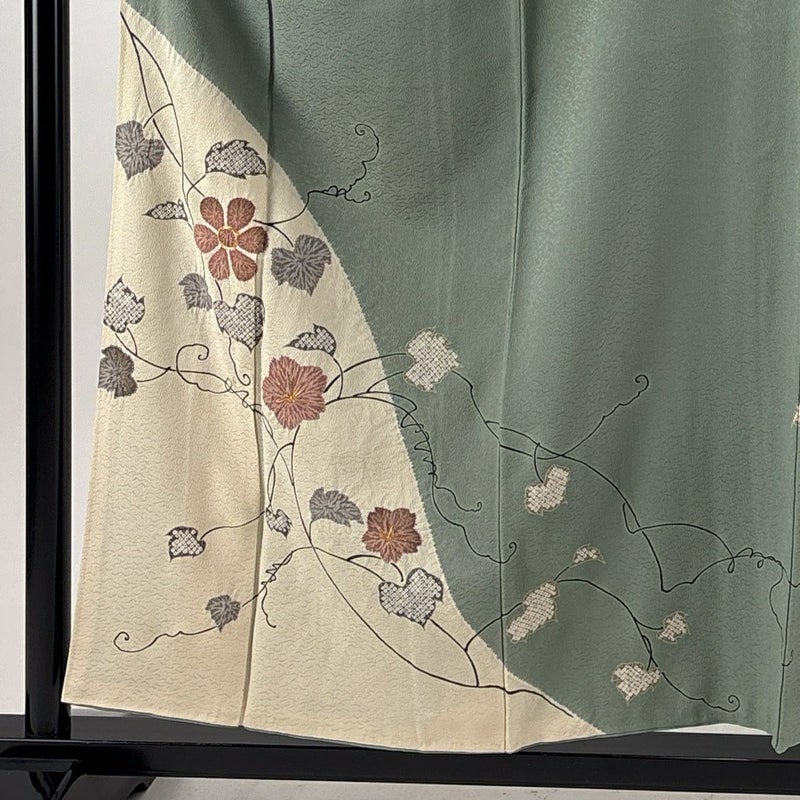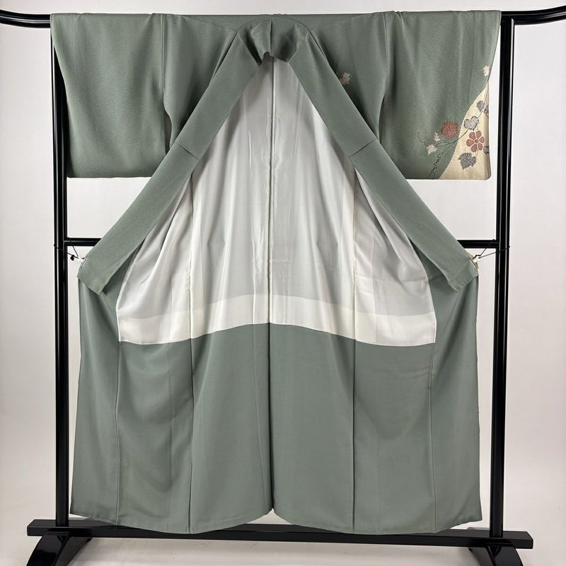 【付下げ】 緑系 薄緑 秀品 B 約150cm~約159cm 裄丈63cm-64cm (M)size 袖丈48cm 4000-7980 二万以下